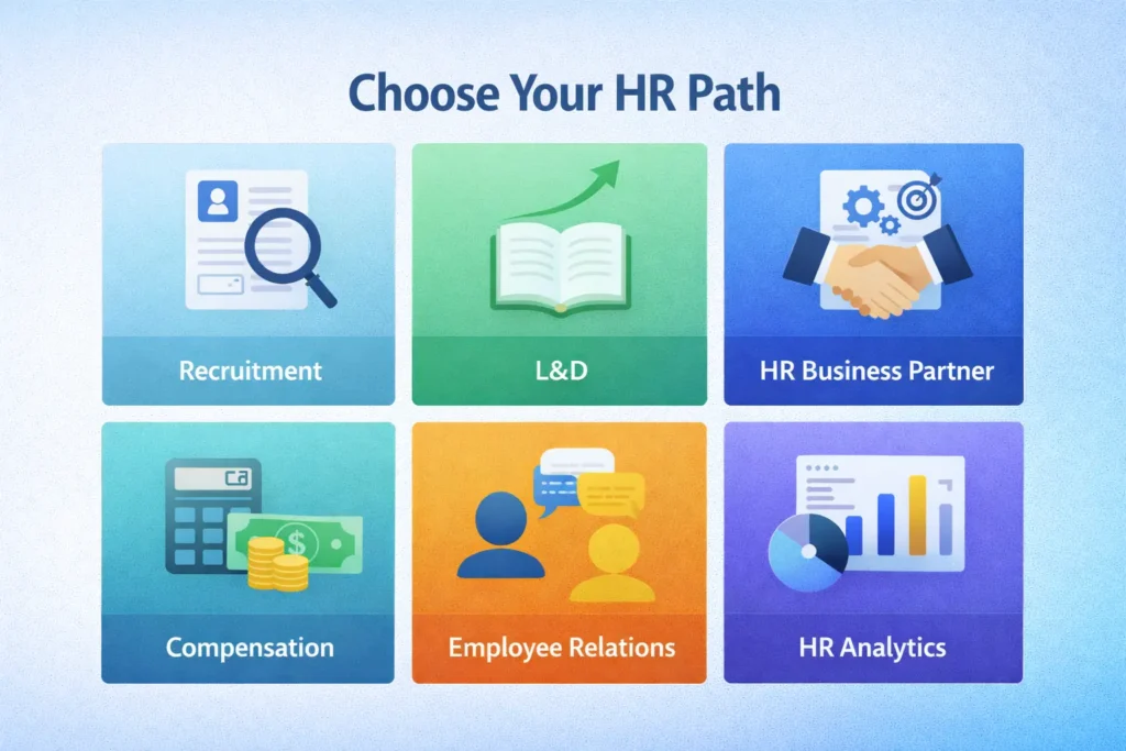 5) HR Analytics & Strategy – using data for workforce planning and business partnering. Additionally, emerging specializations include HRIS management, diversity & inclusion, and HR compliance.